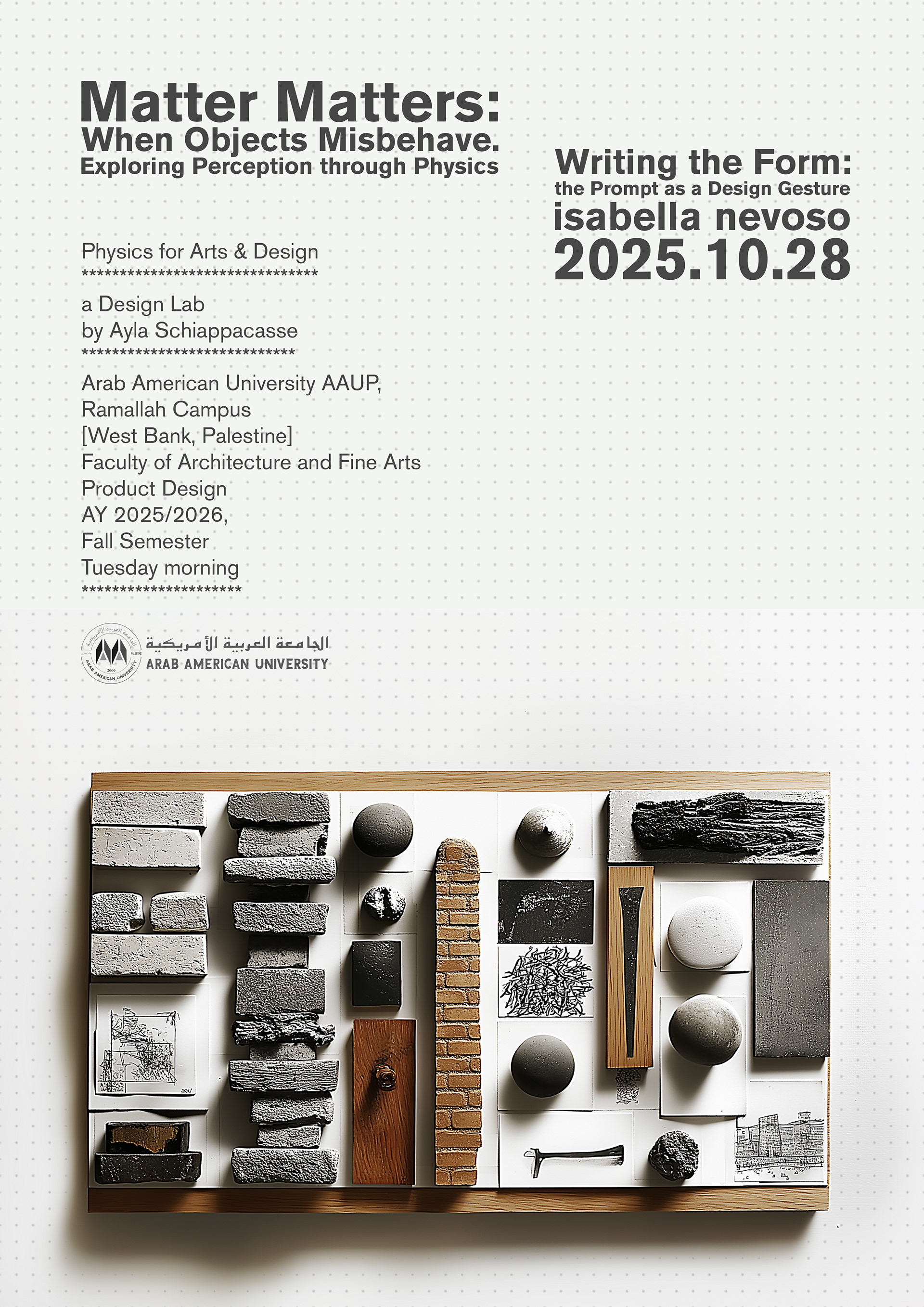Physics for Art & Design | Design Lab: Matter Matters | AAUP, Ramallah Campus | West Bank, Palestine | 2025, 2026